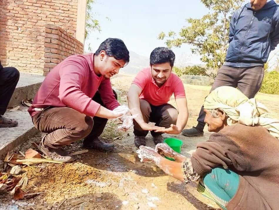 The community people are practicing hand hygiene behavior by following health protocols of COVID-19 in Agnisayar Krishnabarn Rural Municipality of Saptari district.